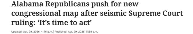 In the wake of the decision, Alabama Republicans are also racing to redraw their state’s congressional district maps before the midterms. Alabama news (AL.com), this morning: