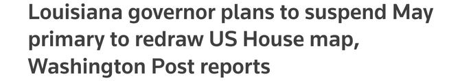 All it will take is those states redistricting to ensure compliance with SCOTUS’s new race-neutral requirement, and these clowns will go away for good. Reuters reported that Governor Jeff Landry (R-La.) immediately suspended the May primaries, to allow time to reprint ballots reflecting a new map before the November midterm elections: