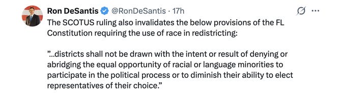 The effects are so wide-ranging that it’s hard for anyone to count them all. For instance, Governor DeSantis pointed out yesterday that the new decision changes the game in unexpected ways, as in Florida, where SCOTUS’s decision just voided part of Florida’s state constitution.