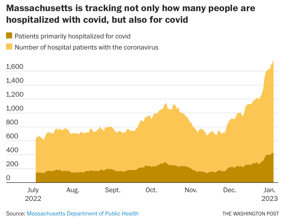 Wen pointed out that Massachusetts has shifted to dual-reporting both patients coded as covid, as well as patients who got the steroid dexamethasone, part of the approved covid-treatment flow chart: