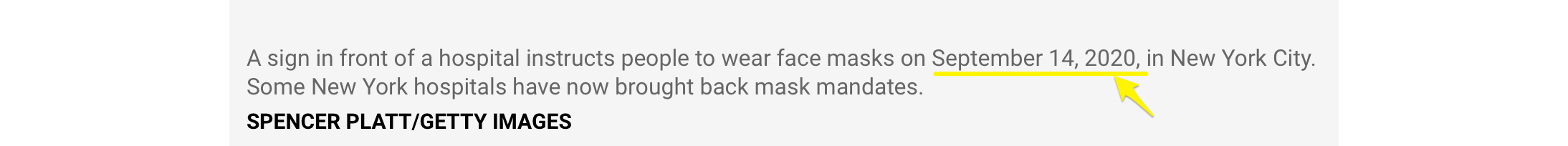 I’ll admit, Newsweek did disclose it was a stock photo, although the disclosure was greyed-out and tiny-fonted. But the Poynter Institute’s warning was for decorating everyday articles with stock photos, like using a random crumpled sedan for a car crash story about an SUV, or inserting a stock Delta jet picture into a story about striking air traffic controllers. In this instance, Newsweek was supposedly breaking a story of great public interest. The case for using a generic stock photo to visually illustrate the “return of mask mandates” is pitifully weak.