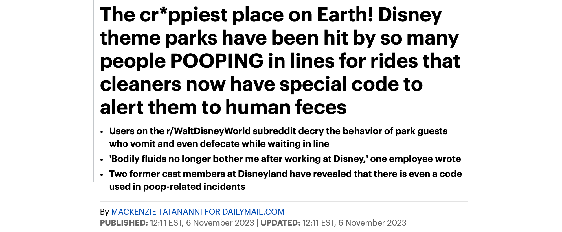 🐭 Finally, my research into Covidian poo mania led me to a recent eyeball-popping Daily Mail story from last month. I can’t imagine how I could have missed it, since it hits on so many C&C subjects. The gist is, before you plan your next Disney World, trip, I implore you to consider this commonsense scatological advice: