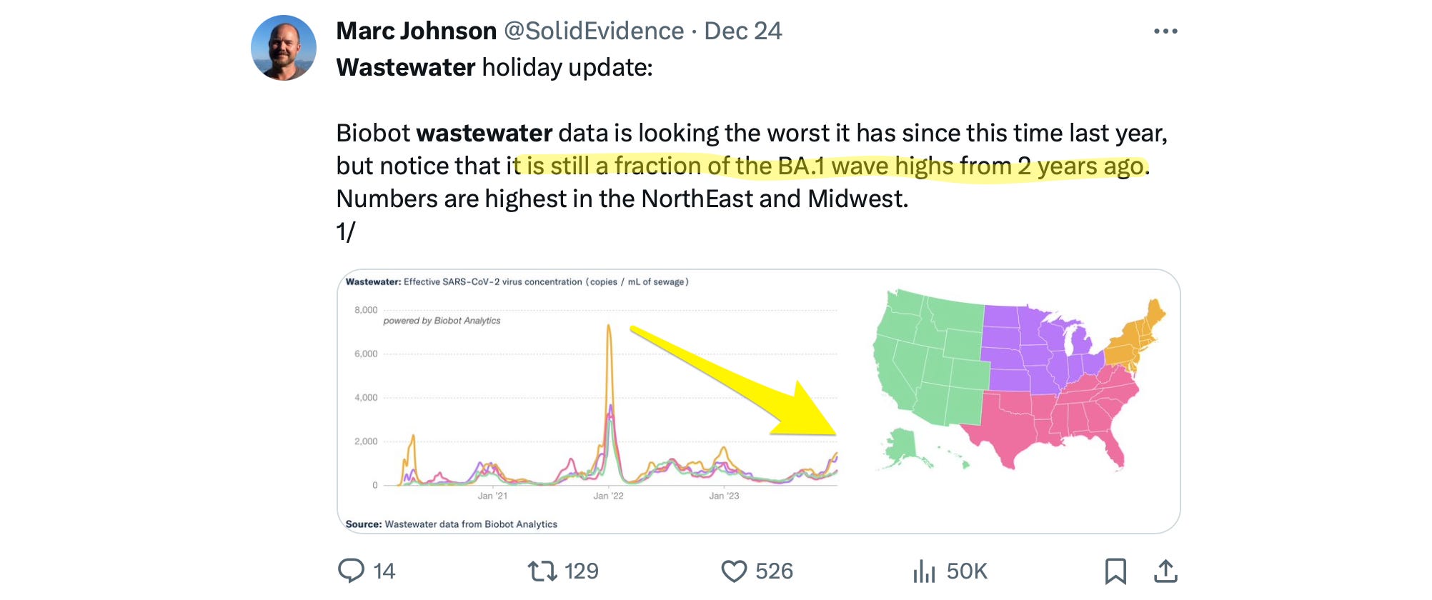So … yawn … this year’s “surging” 2.85% respiratory ED burden at Mass General is half of last year’s burden. Wait! I think I just saw the North Star while my eyes were rolling straight up. Anyway, this isn’t just another stupid, fear-peddling non-story about covid. Remember the wastewater. Here’s what the Globe said about that not-for-the-dinner-table subject: