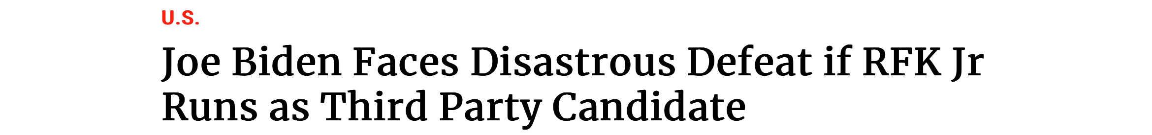 The Newsweek article began with this ominous warning: “A third of Democratic voters would likely vote for Robert F. Kennedy Jr. if he runs as an independent in the 2024 presidential election, according to a new (Rasmussen) survey, potentially handing victory to Donald Trump.”
