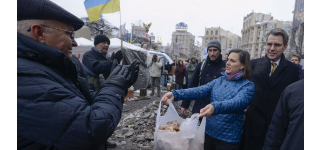 In 2014, Ukrainians were politically divided: Western Ukrainians leaned toward Europe, and Eastern Ukrainians were economically, linguistically, and culturally tied to Russia. The CIA got involved. The dry political tinder was inflamed into a white-hot social media conflagration. There was perhaps no better symbol of our meddling than Assistant Secretary of State for European Affairs, Viktoria Nuland, who was caught literally handing out cookies and bread —you can’t make this stuff up— to astroturfed protesters in Kyiv’s ‘Maidan’ (Independence Square) during the demonstrations.