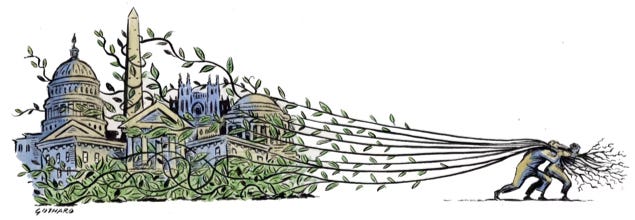 They aren’t going to slow down to try to figure out who’s infesting the deep state, so that it can be carefully pruned by hand. They plan to use a weed wacker. So, for example, Trump will cancel all the generous “work from home” policies that mushroomed up during the pandemic, which Elon and Vivek expect will “result in a wave of voluntary terminations” by employees who can no longer tolerate the thought of getting dressed and going into the office.