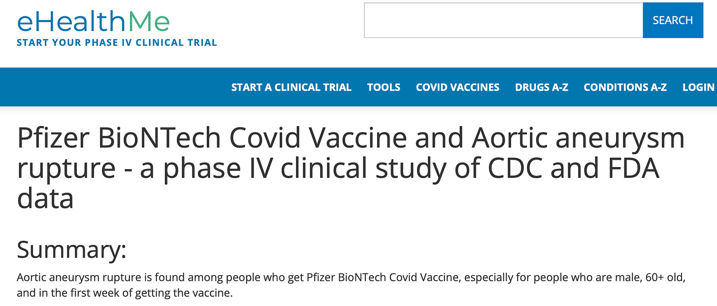 Oops. The trial’s description reports the “time to have Aortic aneurysm rupture from when people get Pfizer BioNTech Covid Vaccine:”