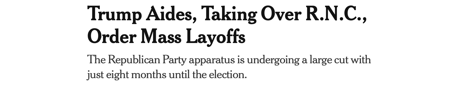 The RNC needed to be cleaned top to bottom five years ago (when it was clear they were sitting on their hands doing nothing about the impending 2020 ballot harvesting), not eight months before the election. Here's hoping they can salvage something.........