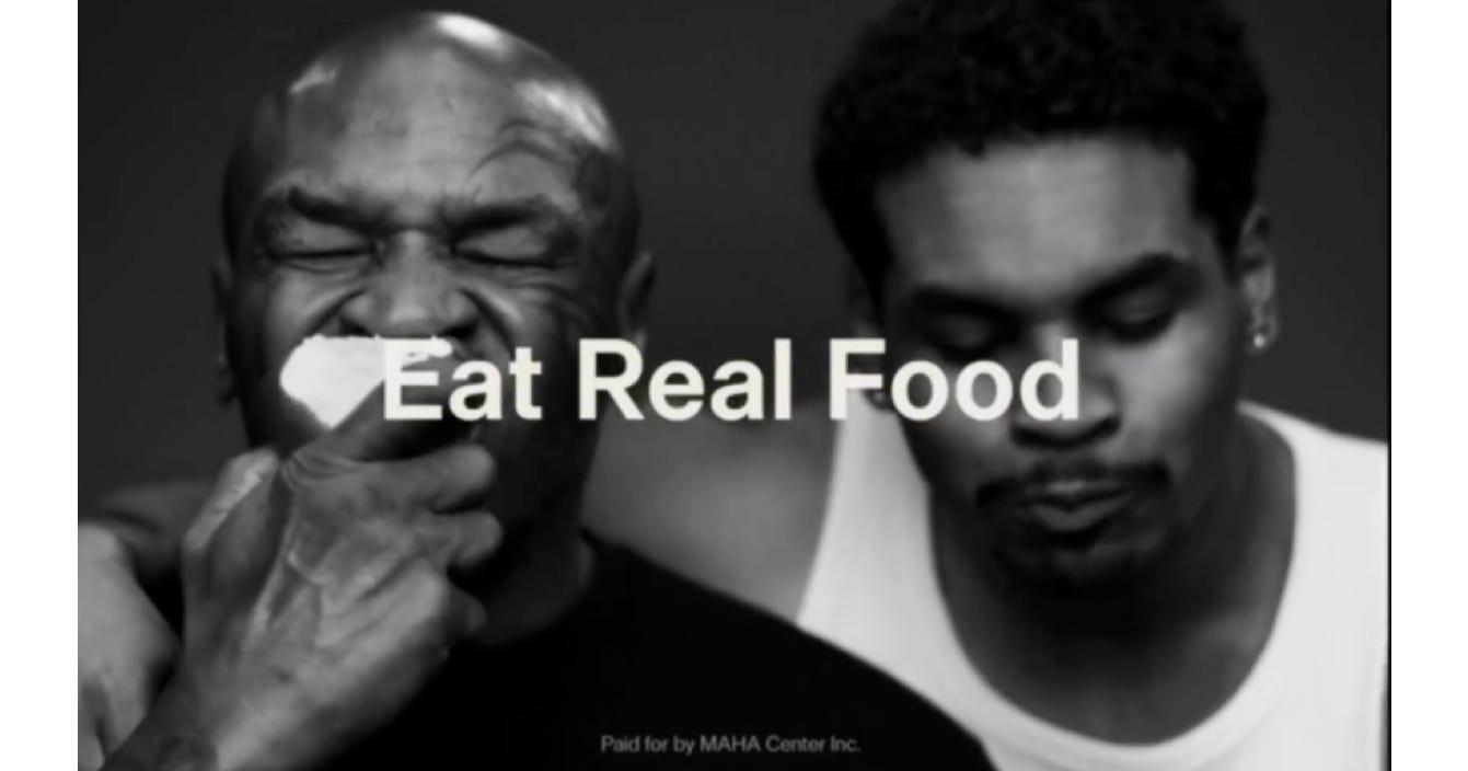 Since Apple’s historic “1984” commercial for its then brand-new Macintosh computer, the advertising has been as much a star in the Super Bowl lineup as the players on the field. Social media buzzed about three entries. First, MAHA allies aired a Mike Tyson ad telling Americans to “eat real food” and directing viewers to RealFood.gov. (Spoiler: don’t eat human ears with seed oils in them.) Robert Kennedy, Jr., called Tyson’s ad, which actually encouraged trading ultra-produced food for the real stuff, “the most important message in Super Bowl history” and compared junk food to spiritual warfare.