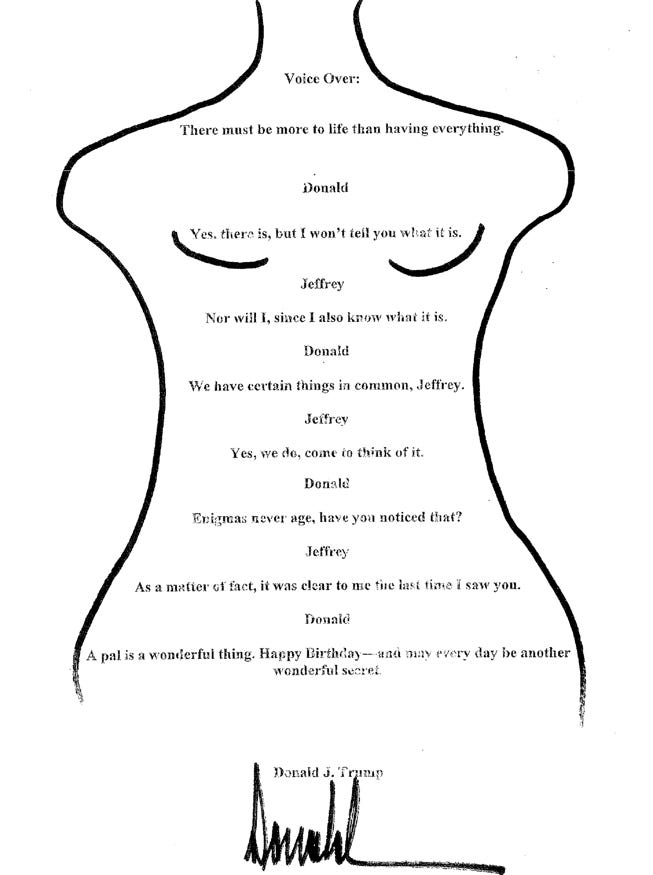 Finally, the scribble dates to a 2003 birthday book, which is several years before the timeline suggests Trump found out about Epstein’s conduct and banned the enigmatic mystery man from Mar-a-Lago. So … what does it prove, even if authentic?