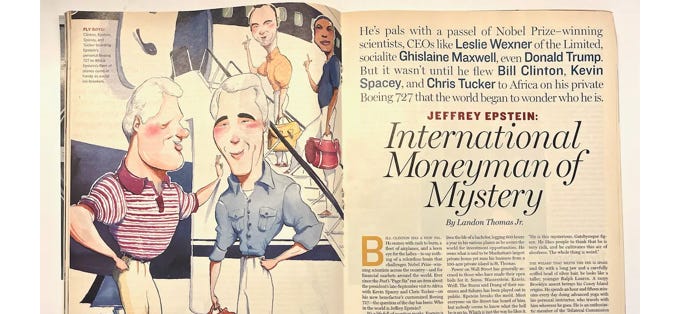The fact that Trump and Epstein sometimes socialized in that era is well established, and Trump has never denied it. The name-dropping Epstein claimed they were close friends (everybody was his close friend); Trump says no, and nobody’s contradicted that.