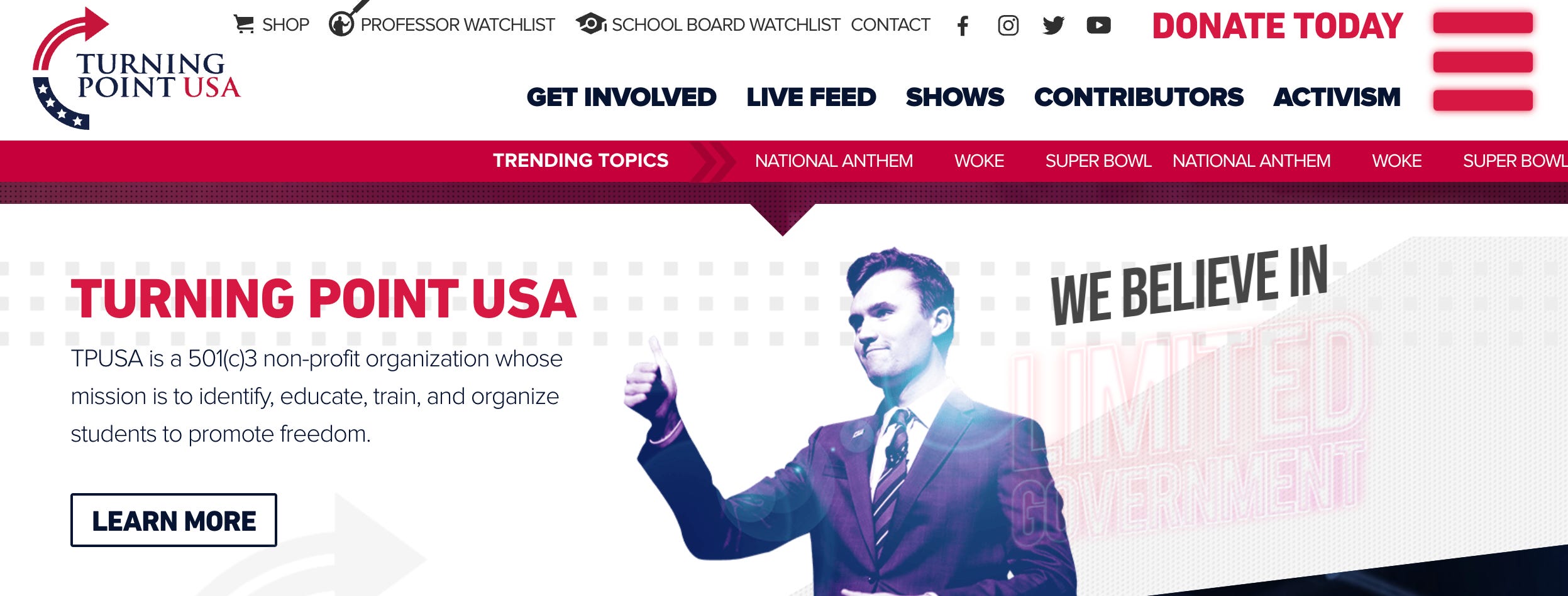Charlie Kirk founded Turning Point a little over ten years ago as a youth movement, aimed at teaching college and high-school kids about conservative fiscal values. TPUSA organizes campus events, conferences, and conservative speakers; it advocates for free speech on campus and has filed several legal challenges against left-leaning academic biases.