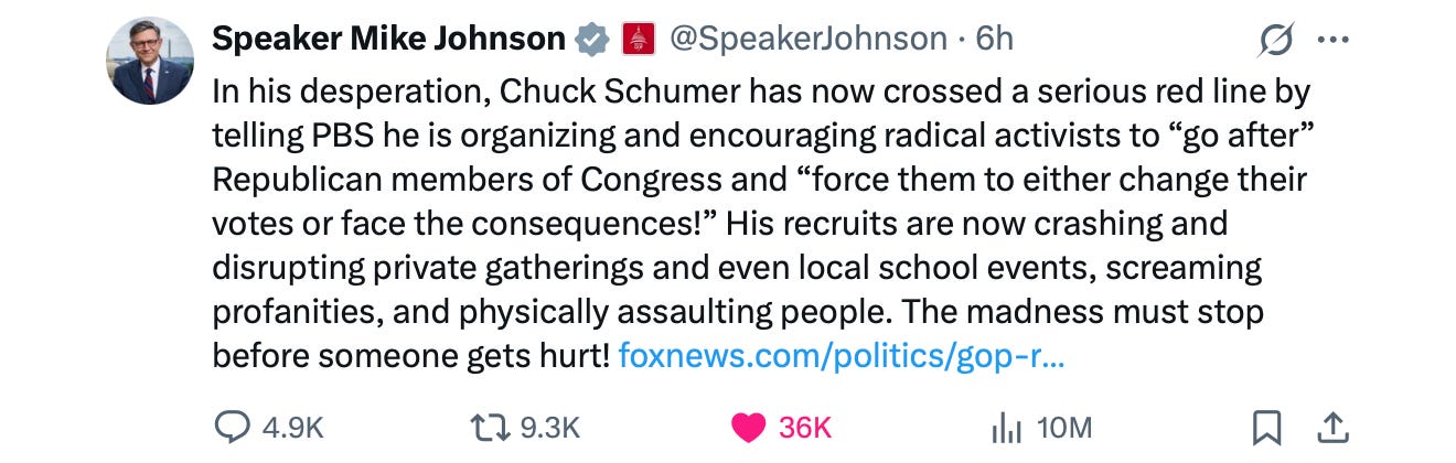Yesterday, House Speaker Mike Johnson (R-La.) tweeted a mild-mannered rebuke, in his usual affable style: