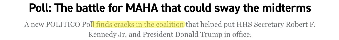 First, Politico ran a breathless, top-of-page poll story about how the MAHA coalition is cracking:
