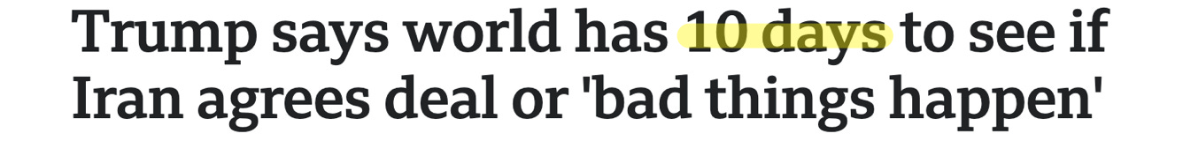 Yesterday, the tenth day, as Trump’s ten-day window began to close, and as the final, third round of talks was wrapping up— Trump told reporters he was “not happy with the negotiation.” He said Iran still wouldn’t “say the key words.” Then came his final warning, delivered with the kind of understatement that sounds deafening in hindsight: “I’d love not to use force, but sometimes you have to.”