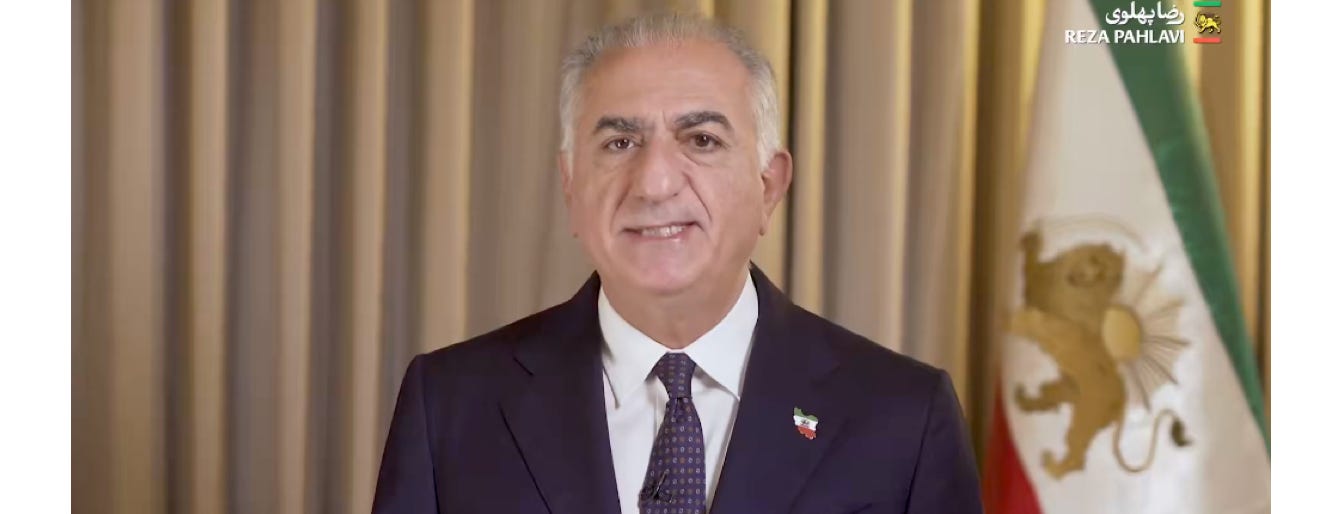 Minutes after the strikes began —in timing that strongly suggests coordination— Prince Pahlavi posted a video message almost completely ignored by corporate media: