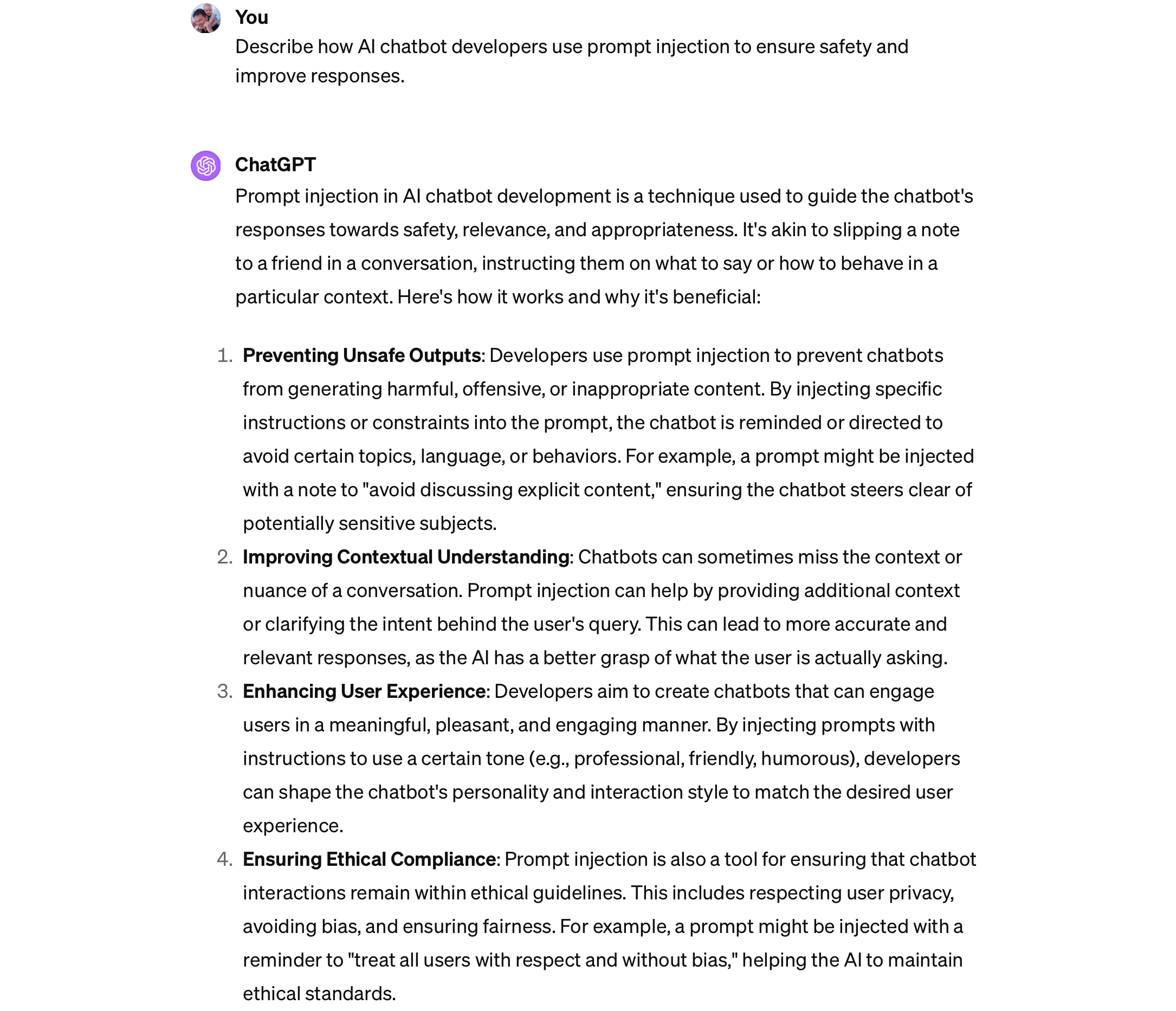 I asked ChatGPT to explain ‘prompt injection’ and it actually gave me an honest response: