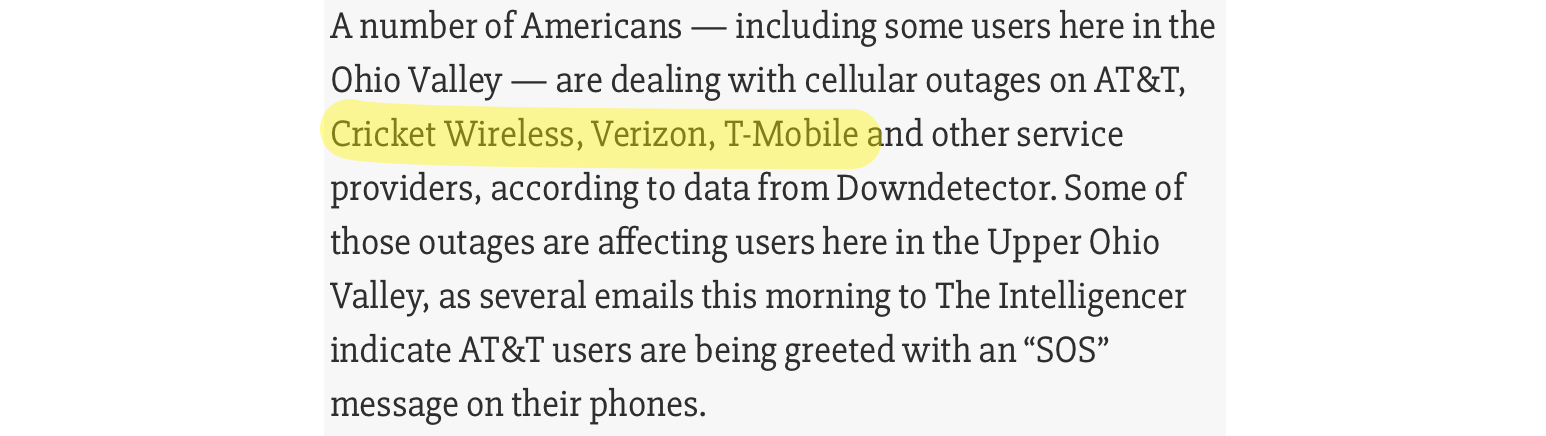 📞 We still don’t know what caused yesterday’s mysterious national outages. Early yesterday, Chron magazine ran a story on its website wondering, “Did a strong solar flare cause the AT&T outage?” The sub-headline explained, “Two of the most powerful type of solar flares exploded overnight, just hours before the outage.” Apparently the Sun expelled two X-class solar flares yesterday, and right after that the nation’s cell phone services blanked out. Not even a dial tone for AT&T, and spotty coverage for many other carriers.