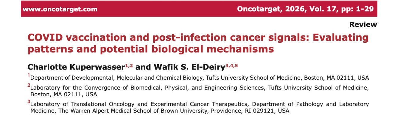 We begin with an update to the cancer study I reported recently. You’ll recall that the paper —a roundup of 69 peer-reviewed studies linking the mRNA shots to cancer— was so radioactive that the online journal hosting it was knocked offline for weeks by sustained denial-of-service attacks. Because nothing says “trust the science” quite like hiring East German hackers to vaporize a scientific journal.