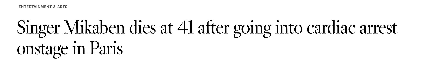 💉 This next story took some work to wind together. But there might be a stealthy, poorly-documented phenomenon potentially happening right in front of us: spontaneous cardiac events at large gatherings, that sometimes cause destructive panic scenarios. In a sane world, we’d have a dozen research teams looking into this. But that would be career suicide, so you’re stuck with me and a ragtag collection of online investigators.