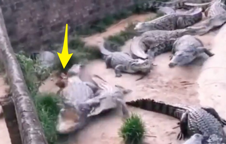 🔥 Continuing our gator theme from earlier this week, if this next video clip doesn’t amaze you and tickle your funny bone, I don’t know what will. The moral is, if this chicken can make it, whatever our problems are, we can make it too.