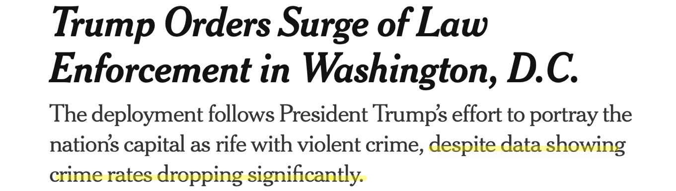 Here in Colorado, specifically in Larimer County, we are seeing a downward trend crime! Can you believe it? A downward trend! Because that’s what happens when you re-classify crime. And you call what used to be crimes misdemeanors. (Stealing catalytic converters used to be a CRIME. Now? No big deal. Just a misdemeanor.) You cook the books. And I’m sure that’s also happening in DC, in addition to relabeling violent crimes. Crime hasn’t changed. It’s just been renamed. Sneaky sneaky sneaky!
