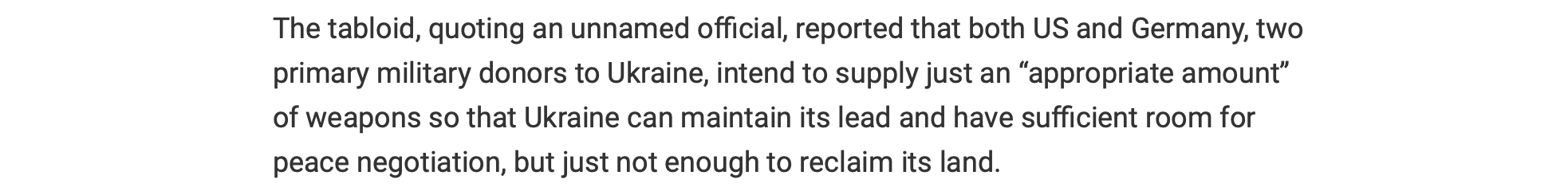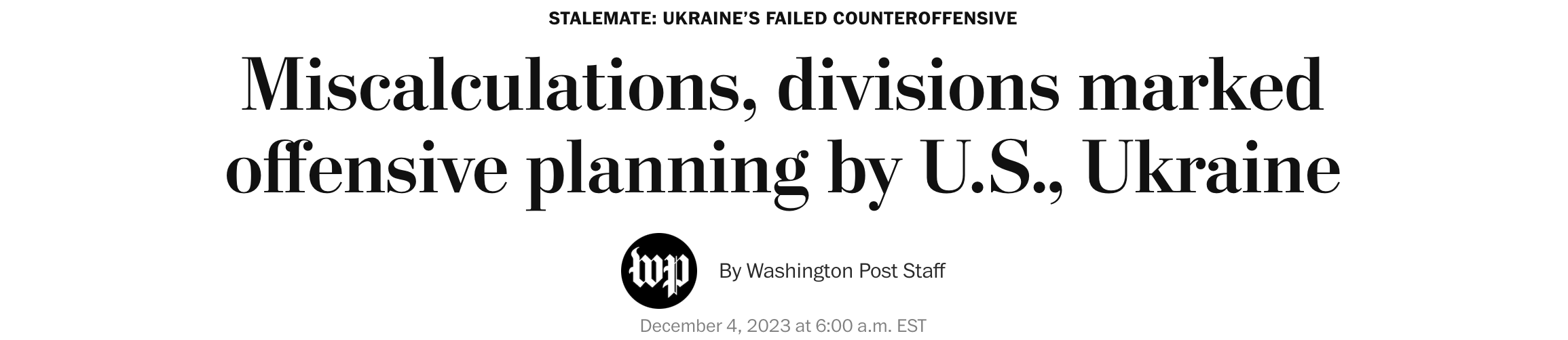 🚀 Well, this seems like a bad sign. Politico ran a gloomy story yesterday headlined, “NATO should be ready for ‘bad news’ from Ukraine, Stoltenberg warns.” Secretary-General Jens Stoltenberg, who is probably still mad about getting a girl’s name, tried to put a good spin on his dark warning. The sub-headline explained, “‘We have to support Ukraine in both good and bad times,’ NATO chief says in ARD interview.”