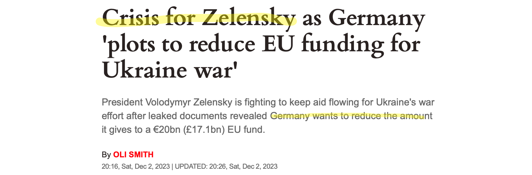 Tick, tock, Zelensky. Finally, check out this fascinating headline from India’s WION News from last week, which itself was sourced from Germany’s news magazine BILD, which is usually reliable, sort of like a German version of Rolling Stone: