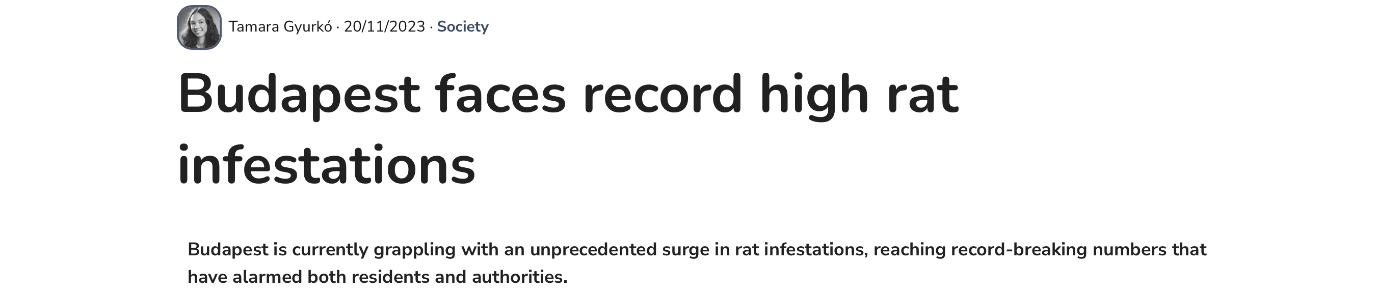 Grim vermin! Verminous pests making workers go crazy! I hardly know what to say about that kind of giant, non-extinct problem. It’s pretty hairy. And it’s all over the world. I could go on and on. Here’s another example, an alarming November 20th headline from Daily News Hungary, about that country’s record-breaking rat rampage: