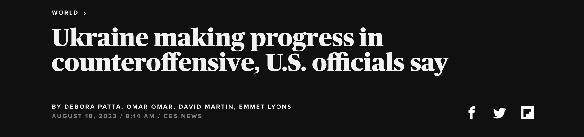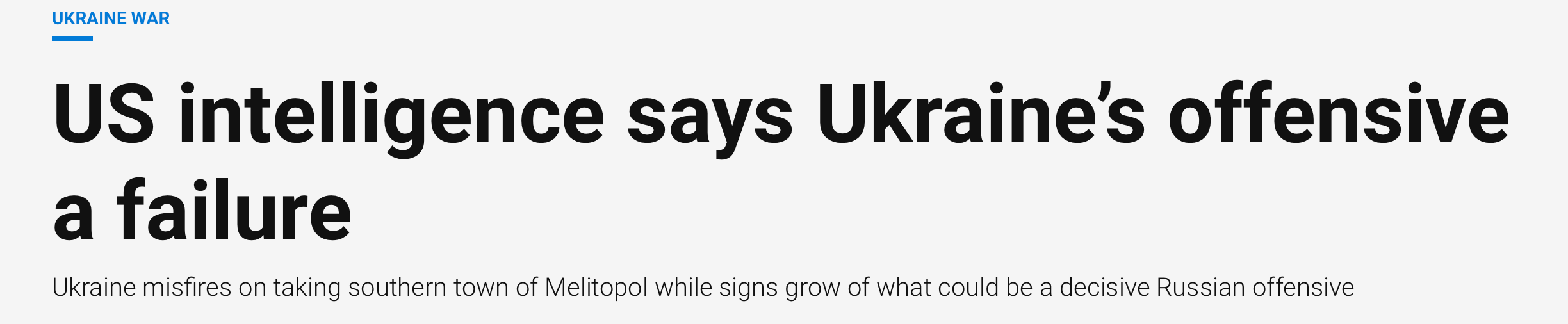 That sure was fast! Only one day between “making progress” and the “offensive’s a failure.” Both from “US officials.” Or more likely, the pages flipped so fast not everyone is singing the same song yet.