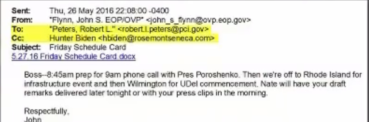 It’s sufficiently weird that a government official, never mind the vice-president, would be using a variety of email aliases. At minimum, it evidences a conspiracy to thwart public records laws. But the above email also gave the lie to Joe’s repeated claims that he never mixed Hunter’s business with government business. Never ever. Not one single time.
