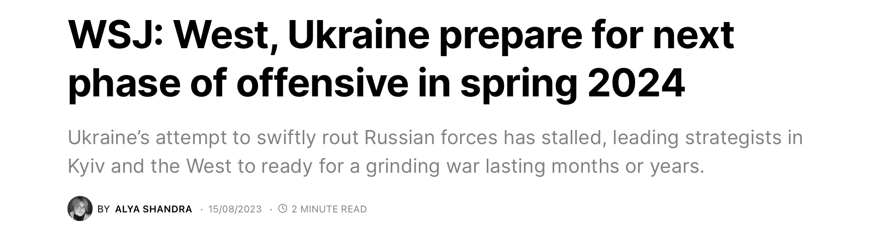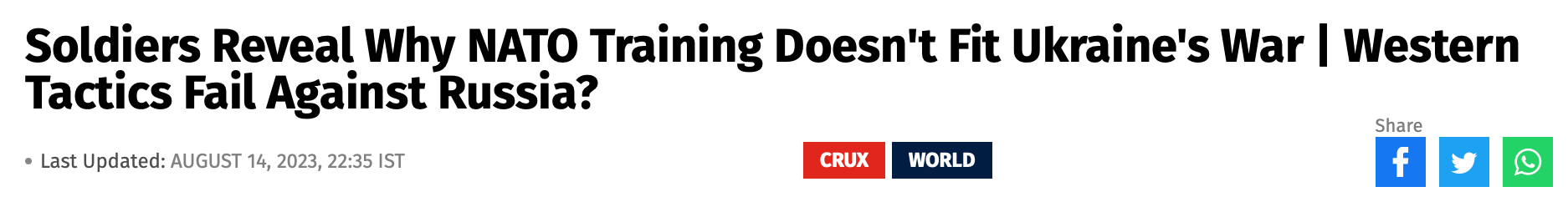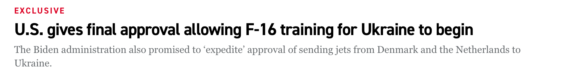 A question about the F16s: How are brand-new, freshly-trained Ukrainian F16 pilots supposed to compete with experienced Russian fighter pilots? It looks a lot like yet another example of Western generals’ overconfidence in the technology gap, rather than a realistic assessment of the odds.