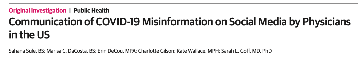 USA Today’s article was reporting on a new “study” posted on the JAMA Open Network, titled “Communication of COVID-19 Misinformation on Social Media by Physicians in the US.” They defined misinformation as anything varying from CDC pandemic-era guidance.