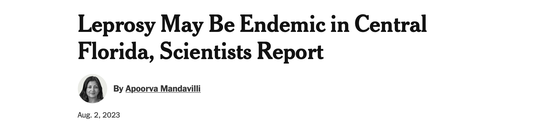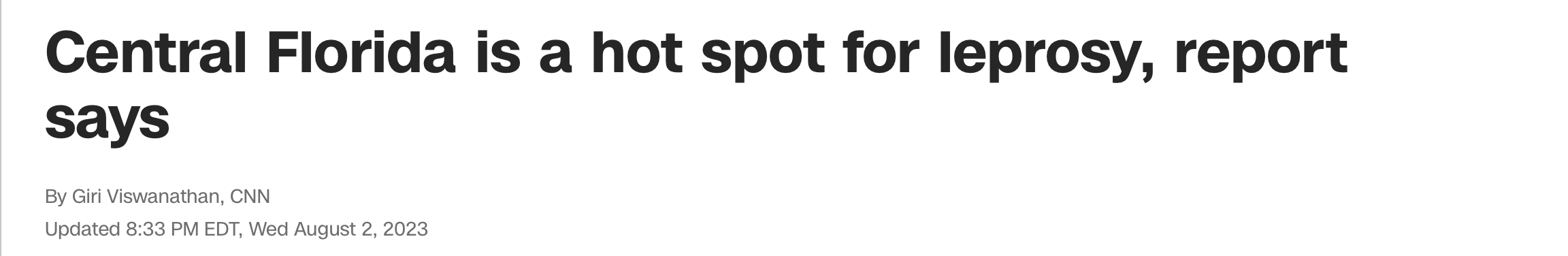Where did this spike in leprosy suddenly and unexpectedly come from? The answer is the stories were based on a single “Research Letter” published this week in Emerging Infectious Diseases, titled “Case Report of Leprosy in Central Florida, USA, 2022.” One case. And the diagnosis was already a year old.