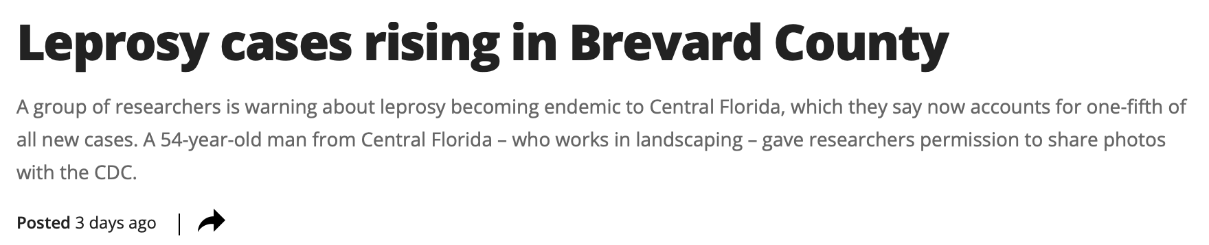 The results returned an explainer page dated back in 1999, which helpfully mentioned that leprosy has been around in Florida for a while — a fact omitted from the recent media coverage:
