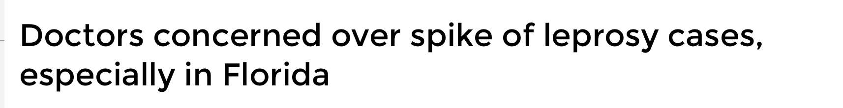 Adding to the Florida leprosy story, I also feel msm is trying to associate anything bad with Florida--as a sort of brainwashing for people to have negative feelings about DeSantis OR to get people to stop moving there. Who knows what type of thing they're trying to control this time. Whether it's weather, mosquitos or leprosy--there has been a lot of "negative" Florida news lately.