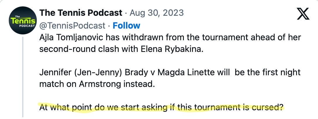 The Tennis Podcast even asked whether the tournament was “cursed:”