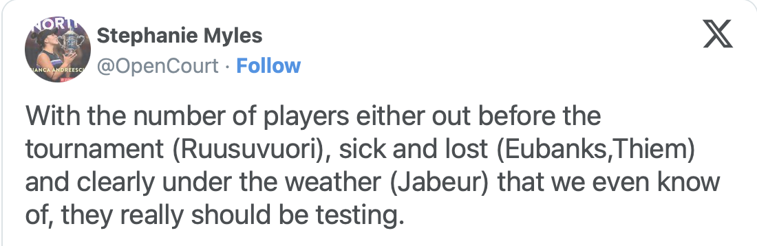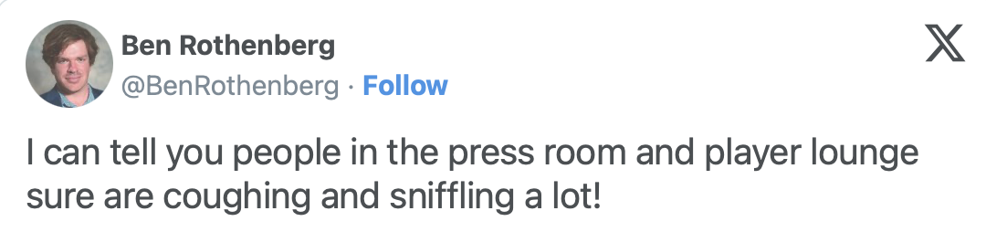 Tennis journalist Ben Rothenberg, who was covering the tournament at Flushing Meadows, noted that folks in both the press room and players' lounge were displaying signs of an illness.