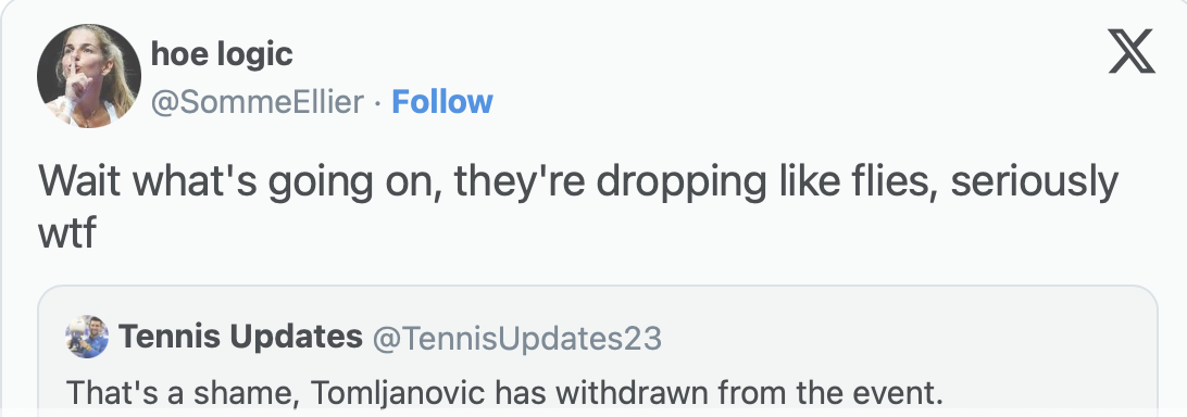 💉 Now, for C&C tennis fans. Two days ago, SportsKeeda ran a story headlined, “’They're dropping like flies’ - Mysterious illness sweeping US Open perplexes tennis fans as Dominic Thiem retires & Ons Jabeur struggles.