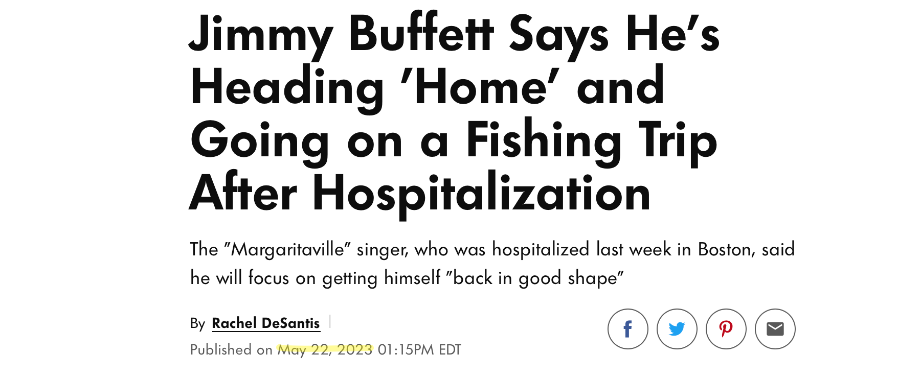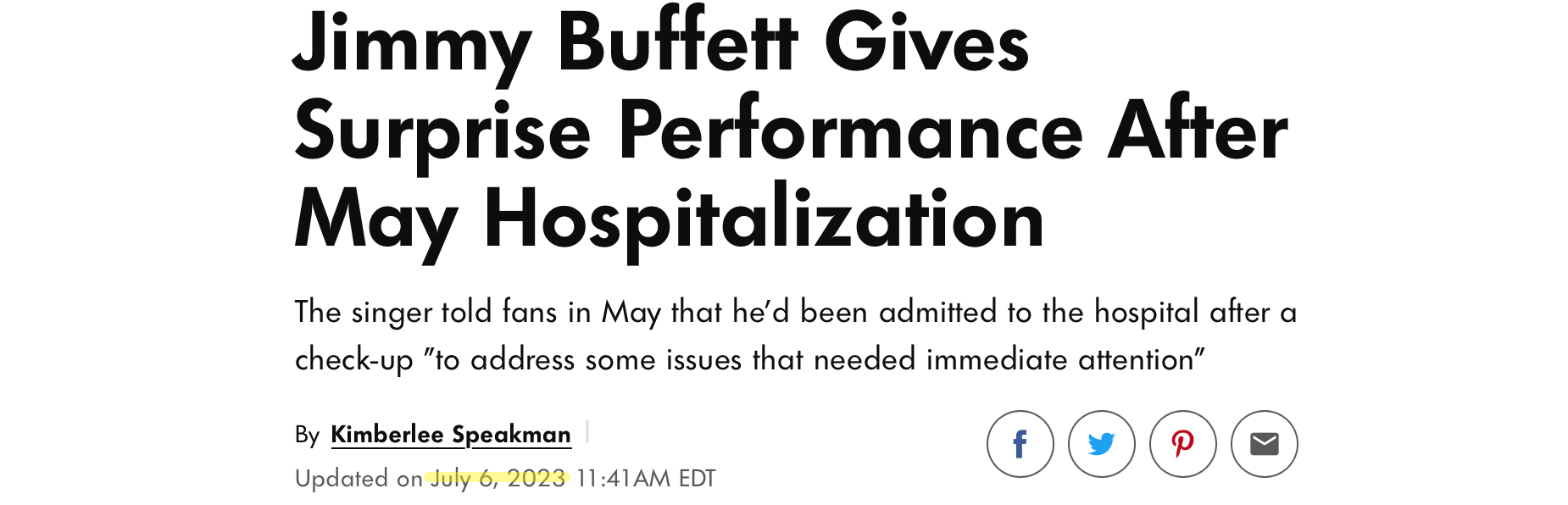 💉 Legend and pop-music icon Jimmy Buffett died mysteriously yesterday, and the story unsurprisingly has blanketed the media. The New York Times ran the story headlined, “Jimmy Buffett, Roguish Bard of Island Escapism, Is Dead at 76.”