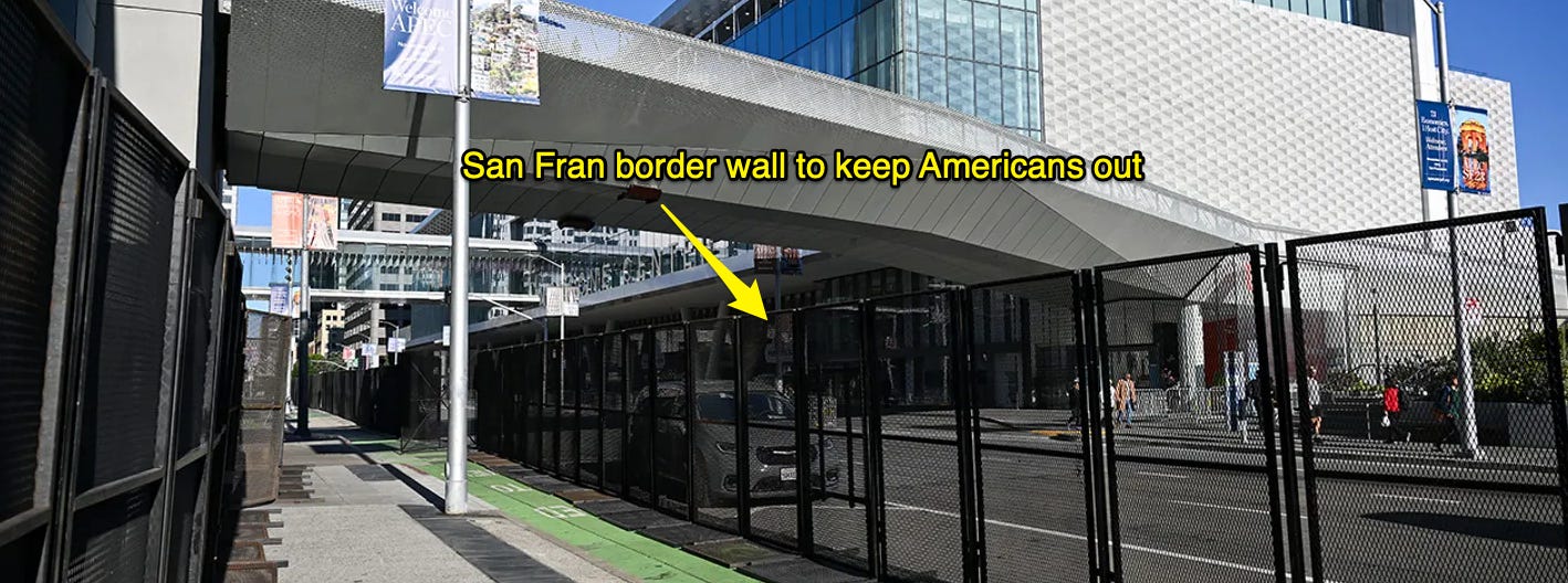 The liberals who run San Francisco even built a border wall around their conference, to keep smelly Americans away from the communist leaders: