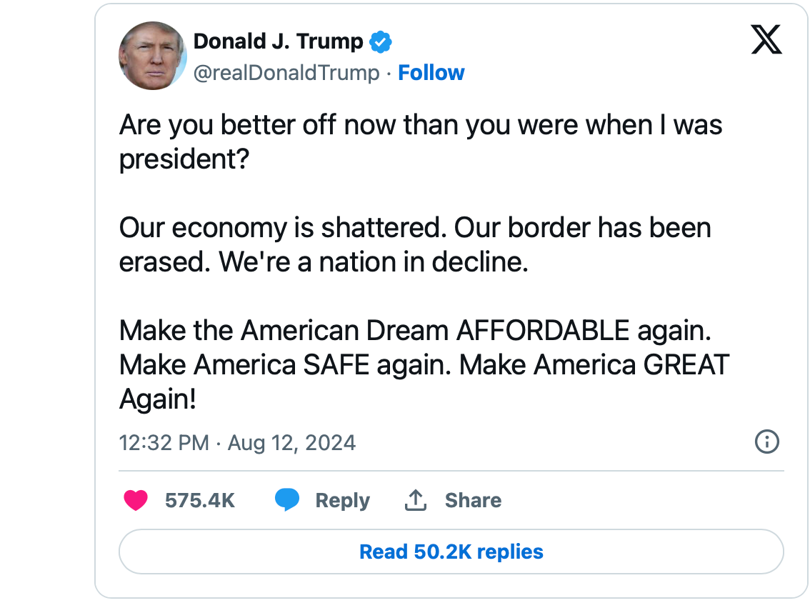 🔥🔥 You will recall that Trump was suspended from Twitter on January 6th. Elon Musk un-suspended Trump earlier this year, provoking hysterical yips of fear from corporate media. But Trump did not use his Twitter account. Yesterday, he came back. It was a flex, an early sign of a shift in the Trump Campaign. He’s going on offense. Variety ran the first story yesterday, headlined “Donald Trump Returns to Posting on X/Twitter After Year-Long Break Ahead of Elon Musk Interview.” Here is Trump’s first X post since January 6th, 2021: