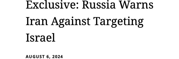 Let’s start with the good news part. First, you’ll recall recent reports of top Russian General Shoigu’s visit to Iran back on August 5th. It turns out that, instead of firing up the Iranians, General Shoigu may have been a more conservative wet blanket. According to Iranian media, Iran’s key ally strongly warned against any action against Israel that might cause civilian deaths. Headline from Iranwire, August 6th: