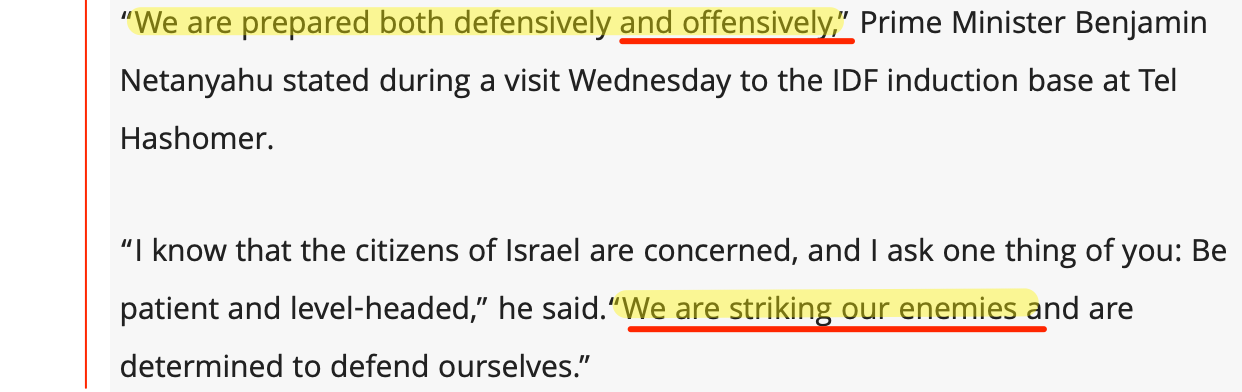But Netanyahu’s carefully calibrated words may be just that; words intended to deter Iran, rather than signal imminent action. I supposed yesterday that Israel might, politically, need Iran to attack first. Hopefully that dynamic holds, along with Iranians and Russians continuing to be the mature adults in the nuclear room. These restraint reports are the first good news we’ve received in the conflict thus far.