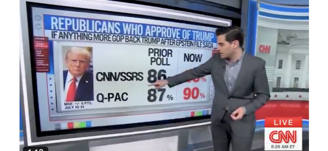 Finally, despite the overheated corporate media claims and wishful thinking, CNN found that the MAGA faithful are not leaving Trump. If anything, Trump’s approval rating among Republicans is climbing: