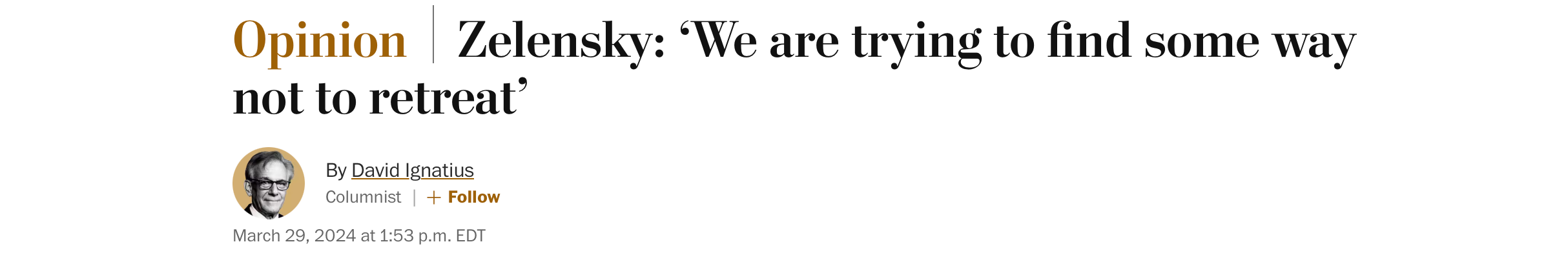 As for the war, things are not going well for Ukraine. Yesterday, the Washington Post ran a strange op-ed. It was strange because the op-ed was written by a Washington Post reporter, who had interviewed former comedian Zelensky for the story. Why wasn’t it published as a straight news piece? Who knows. Here’s the headline: