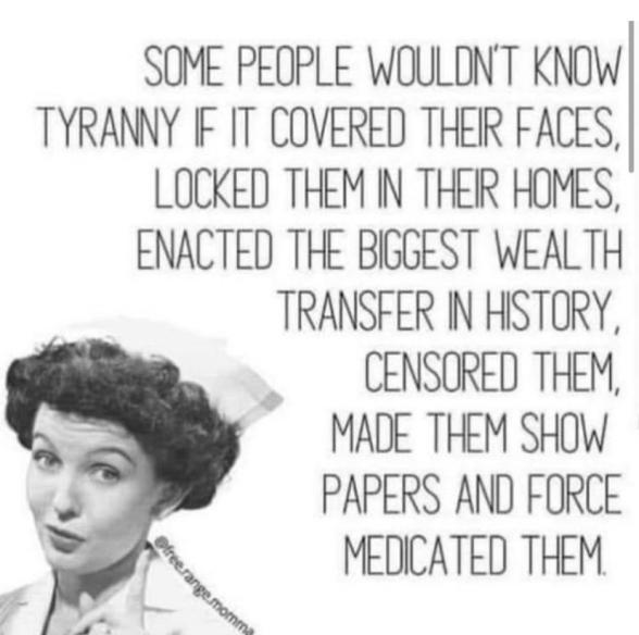 Agreed. On those masks: not only do they not work to prevent the spread of a virus, they are also incredibly harmful for both the mind and body. This is by design - just like everything else about the malovalent plandemic: https://c19science.info/COVID-19_Masks.pdf