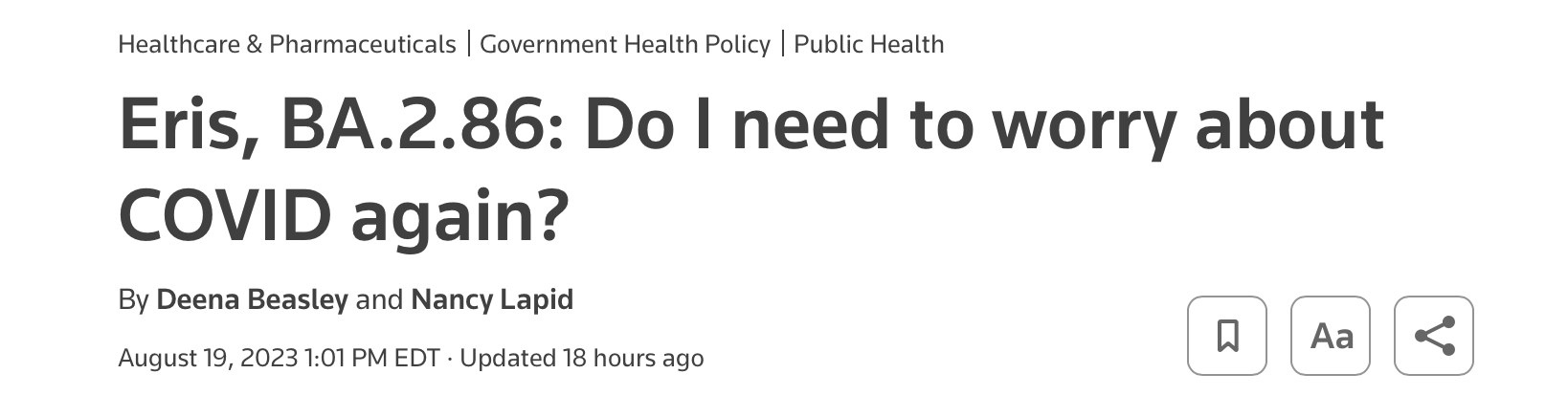 Please note the other two breaking stories this week. I reported them both. First of all, there’s this new, even more transmissible variant that we are supposed to be worried about, dubbed “Eris.” From Reuters, yesterday: