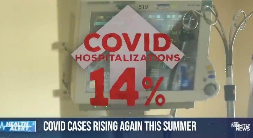 Eris’s rollout created a pretext for Establishment Media to terrify its zombiefied constituents using the same old tricks. From Lester Holt on NBC this week, behold: “Covid Cases Rising Again This Summer:”