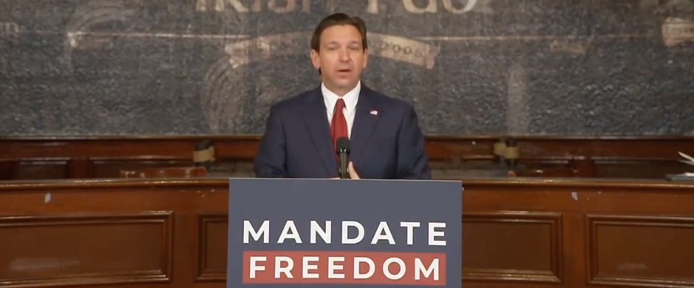 🔥 Governor DeSantis held a blockbuster press conference yesterday titled “Mandate Freedom,” in which he coined what may be my favorite new expression. He was talking about the possibility of new federal mask mandates, and said: